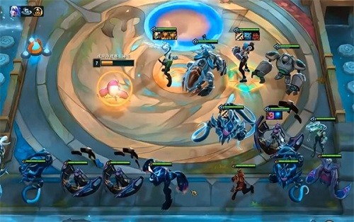 1:如图所示阵容由大眼,鳄鱼,锐雯,猪妹,机器人,盲僧,蔚,牛头,琴女组成的;